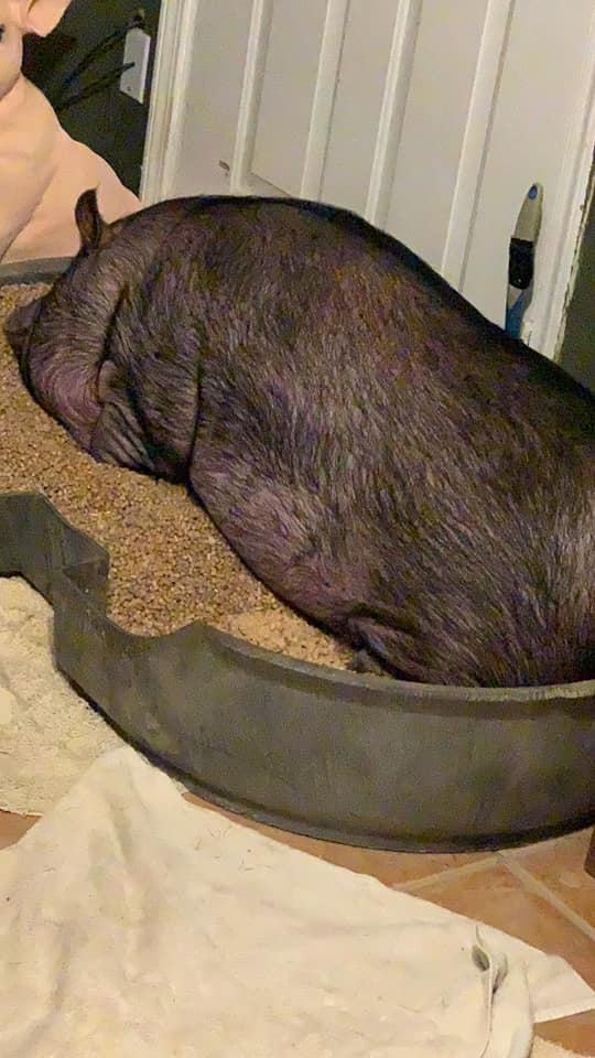 Pigs are easy to train. If training indoors use a pool, tub, plastic crate, pan cut down edge to make it easier to get into. Add either a dog pad, shavings or equine pellets or cat litter made from recycled paper) If using pellets lightly moisten so won’t hurt their hoofs. After pig eats, sleeps, plays place in box and say “potty”. Repeat. Once goes praise can give treat but not near potty box so pig doesn’t expect a treat for going potty. Shallow box with edge cut down and smoothed off roughness. If pig has accidents thru out the home wipe up with toweling and place in potty box. Pigs can’t hold urine till almost a year old. NEVER PUNISH PIG< HIT PIG OR SHOVE SNOUT INTO URINE. Adding a potty box to rooms pig is allowed during training can be a time saver when it comes to accidents. Placing food as some will say to area works for some also but others could care a less if potty in spot his food is at. Using odaban, vinegar, baking soda and dash of mint will help in removing odors. If potty training outside, take outside after eating, sleep and play. Praise. Hanging a bell at door and ringing every time we go potty will train him to do the same. Doggie doors are also good for pigrens for easy access. Following dogs out to go potty is also an easy training tip as they will follow. (NOTE PIGS AND DOGS WILL NEED SUPERVISION ALWAYS AS THEY SPEAK DIFFERENT LANGUAGES)
